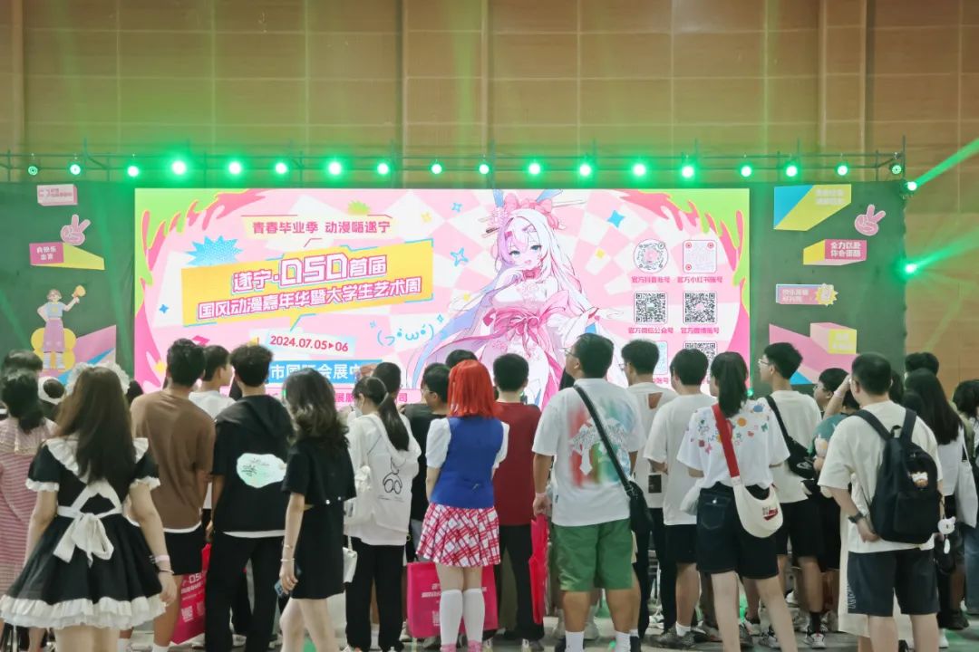 據(jù)悉,本次活動是我市“一月一會展”活動之一,特邀千萬級粉絲coser來到遂寧,現(xiàn)場進行舞臺見面會和嘉賓簽售會環(huán)節(jié),與國風(fēng)動漫粉絲們面對面互動交流、簽名、合影留念,同時吸引了30余家國風(fēng)動漫周邊展商、國內(nèi)知名動漫游戲IP參展,其中8家非遺集市商家。
